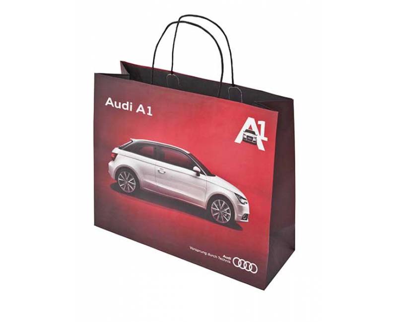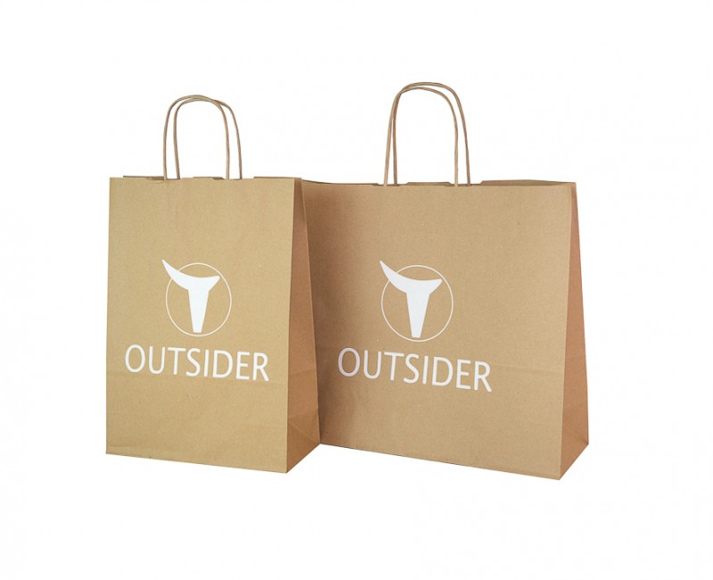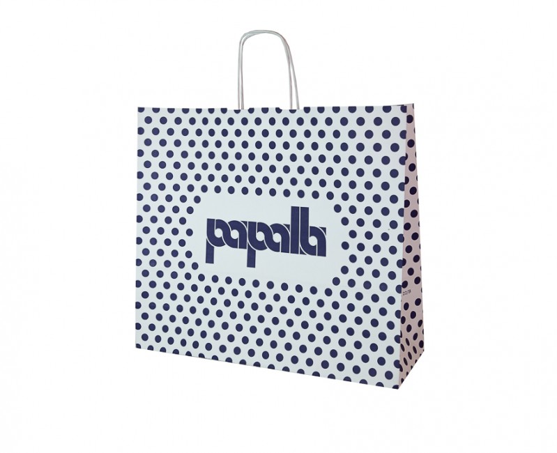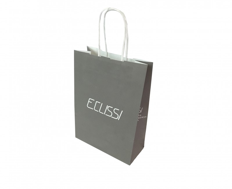 La semplicità del logo ad 1 colore su carta, con manico in carta ritorta per un tocco naturale.