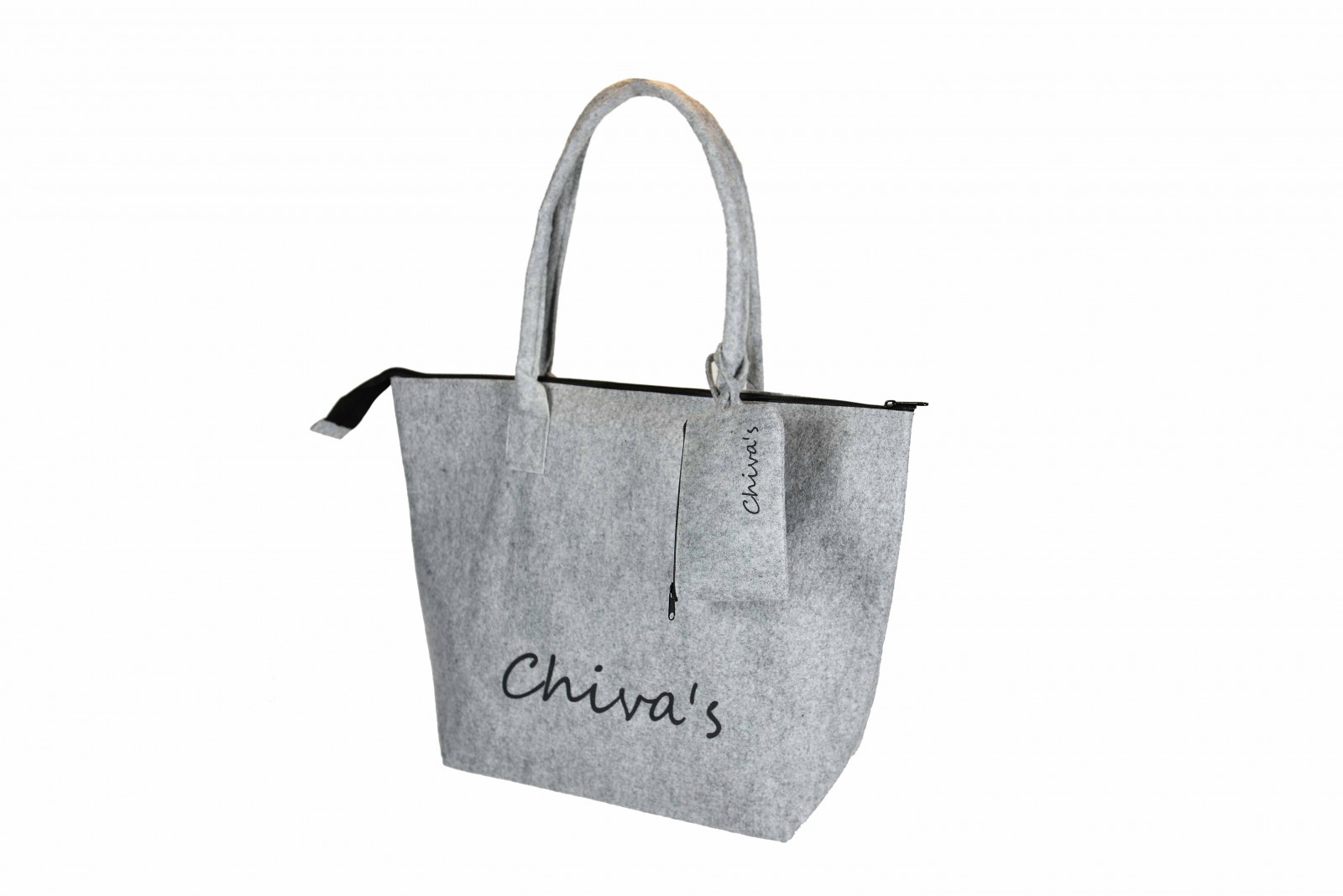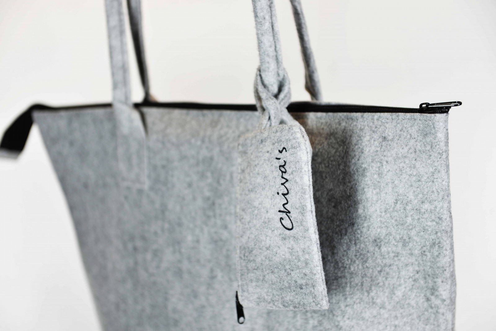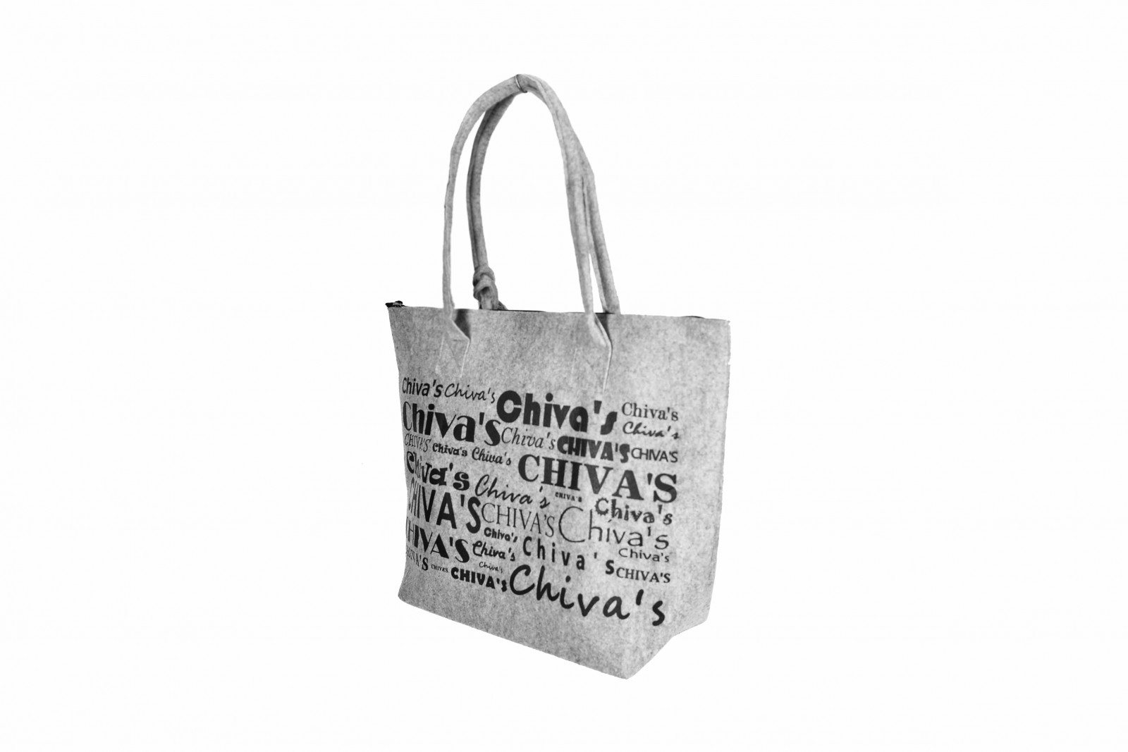 Shopper in feltro modello chapellier con stampa ad 1 colore e zip superiore di chiusura
