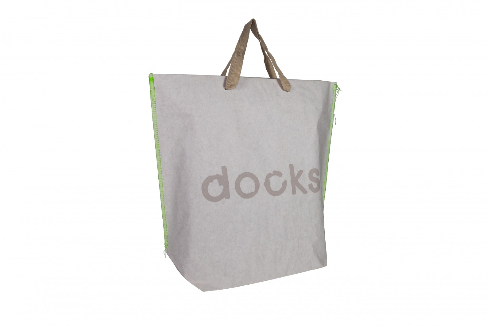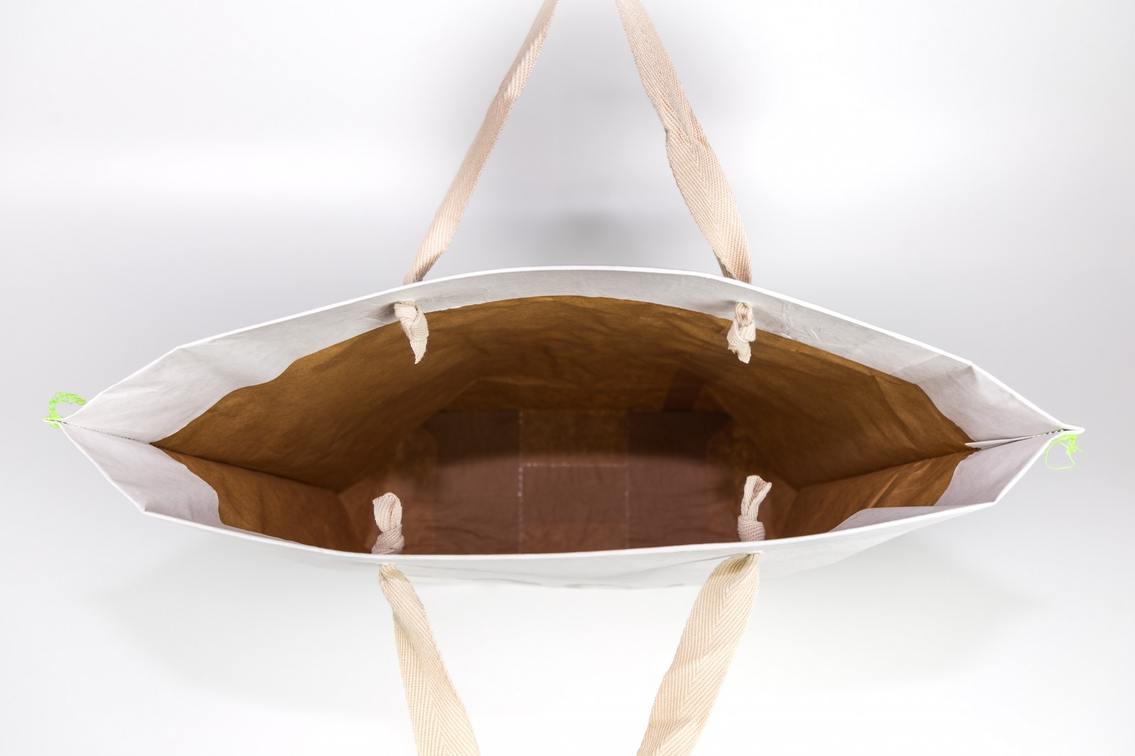 Shopper realizzata in carta cemento, composta da due fogli accoppiati, solitamente con un lato avana e uno bianco, che garantiscono maggiore resistenza e struttura al prodotto.