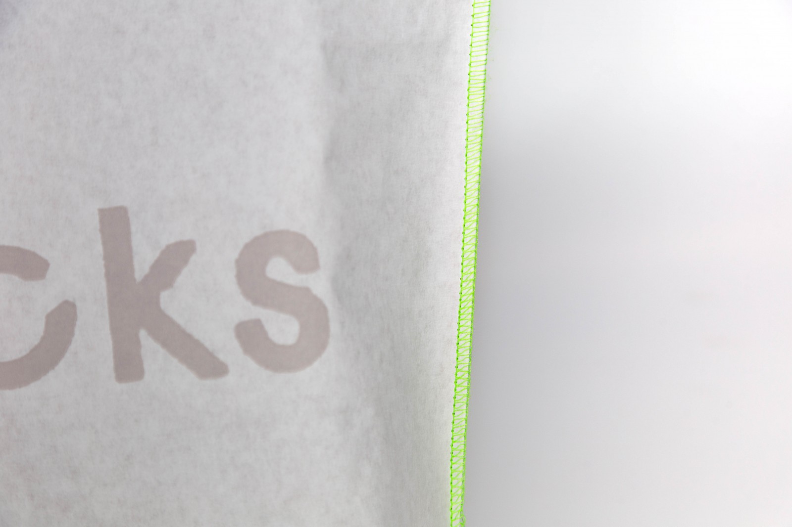 Manici in fettuccia di cotone spigata annodata, robusti e comodi da portare, con cuciture laterali in colore contrastante per un dettaglio estetico distintivo.