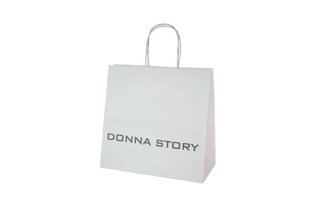 Shopper realizzata in carta economica con goffratura scelta dal cliente dal nostro catalogo, applicata dopo la fase di stampa per un effetto tattile e visivo di grande effetto.