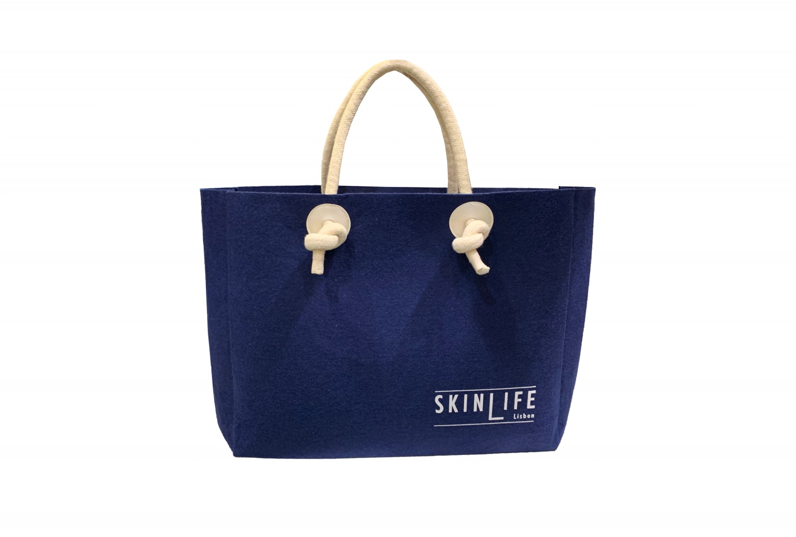 Borsa in feltro con manici in cotone di diametro 1 cm annodati esternamente