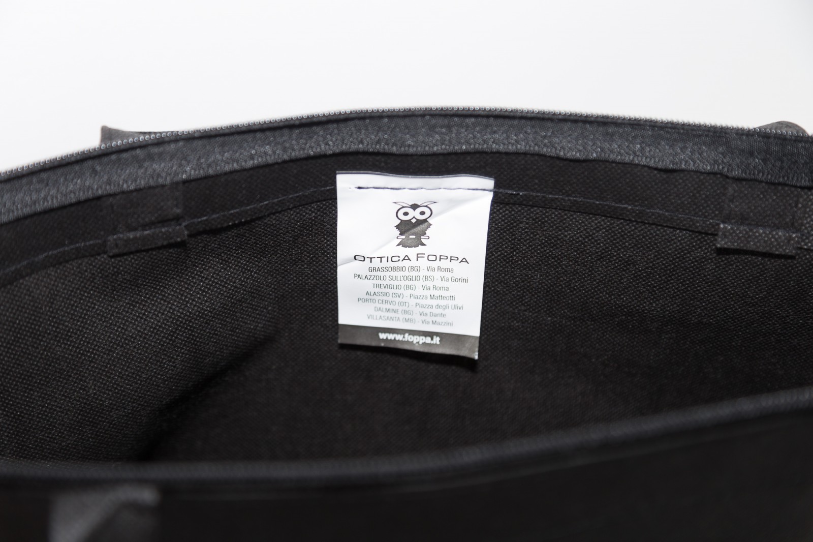 Logo Ottica Foppa stampato in serigrafia per una resa grafica di alta qualità.