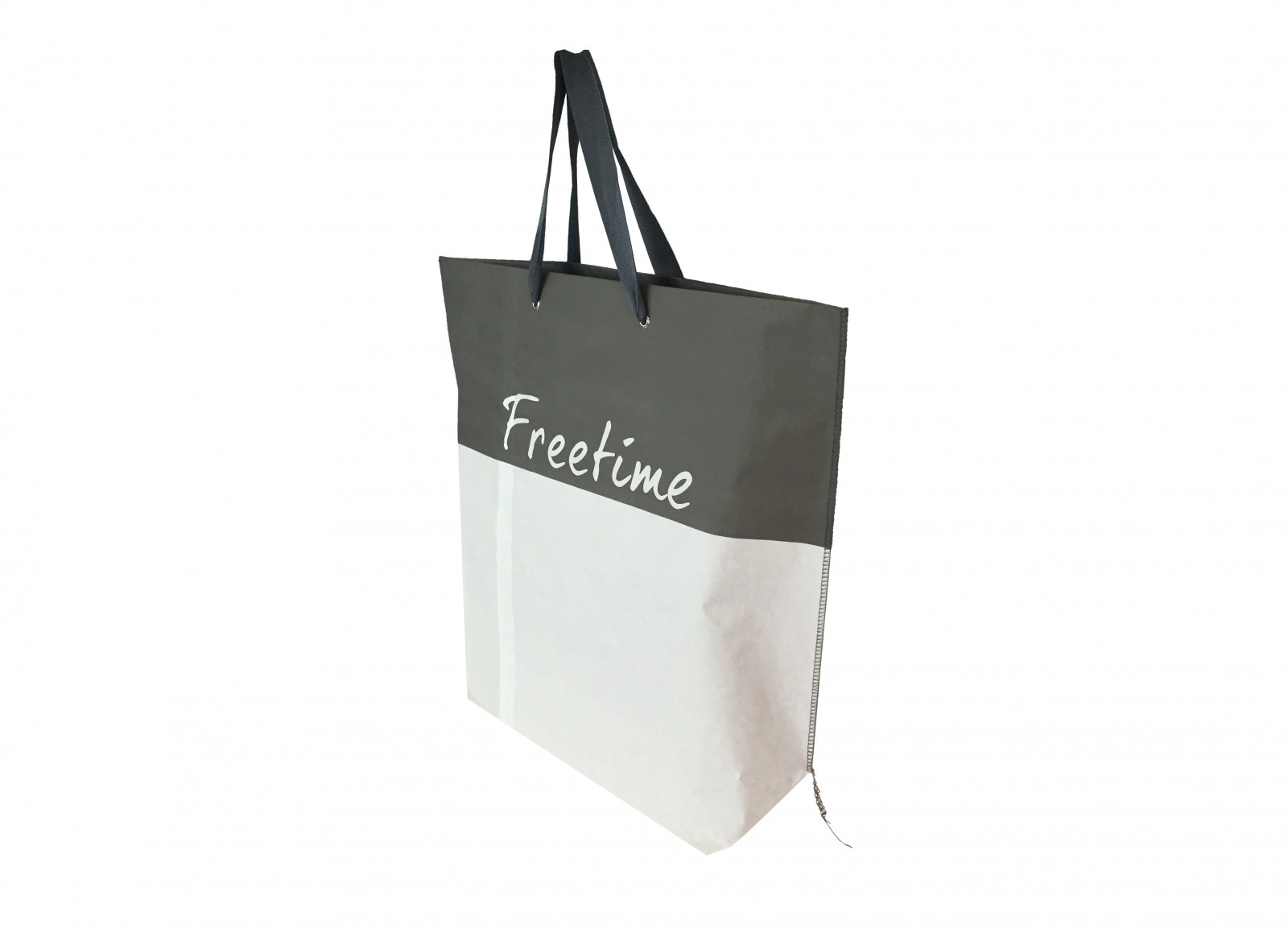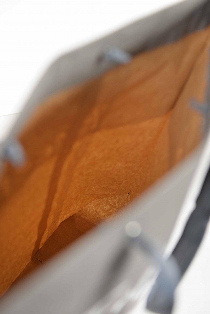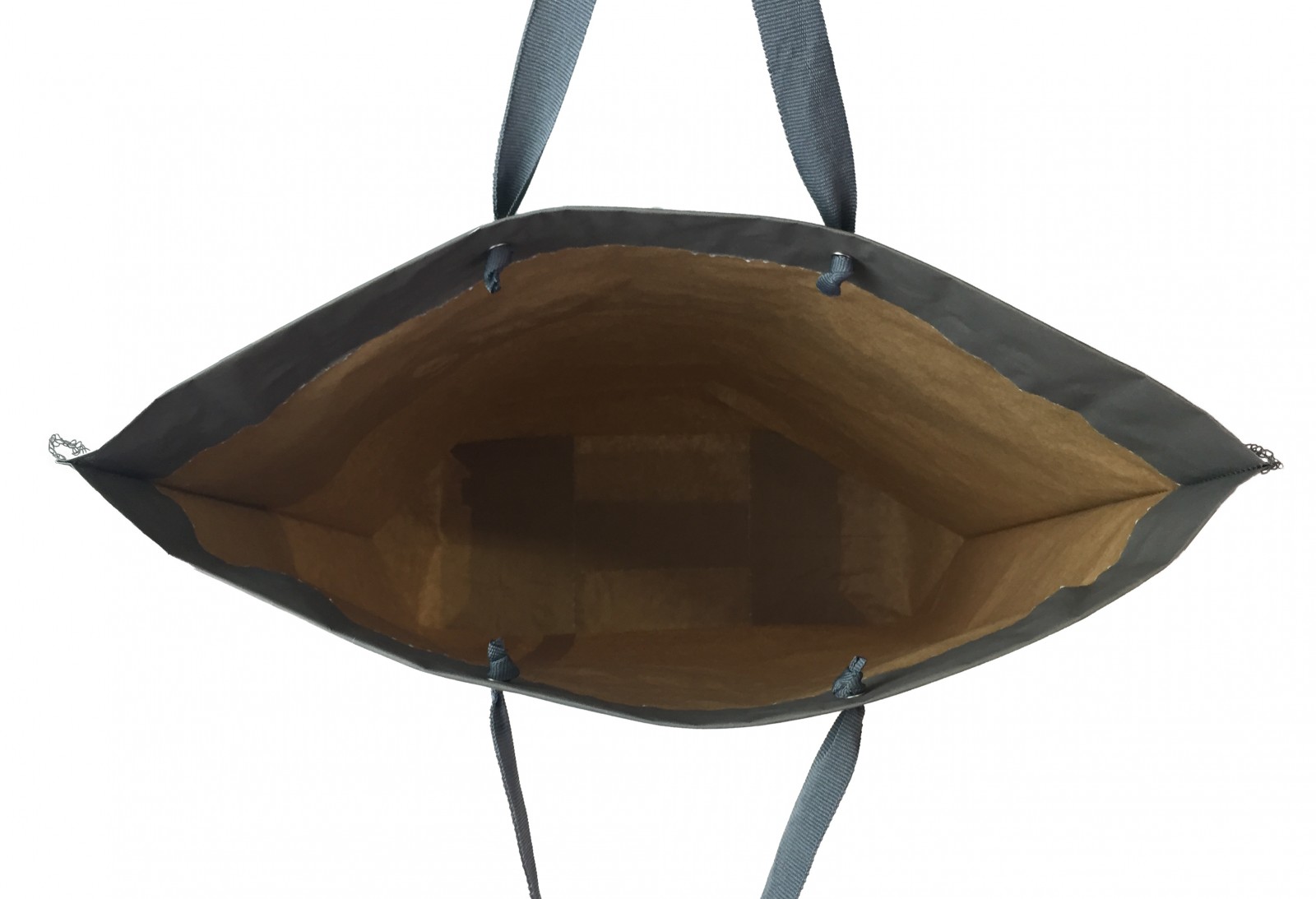 Shopper in carta cemento , trattasi nel dettaglio di 2 fogli di carta accoppiati , normalmente con un lato avana e uno bianco.