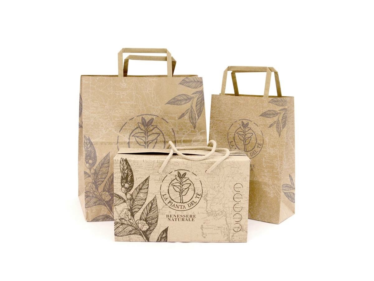 Shopper realizzate in carta avana naturale, economica ma di qualità, con manici piatti resistenti e confortevoli, ideali per un confezionamento pratico e dal forte richiamo naturale.