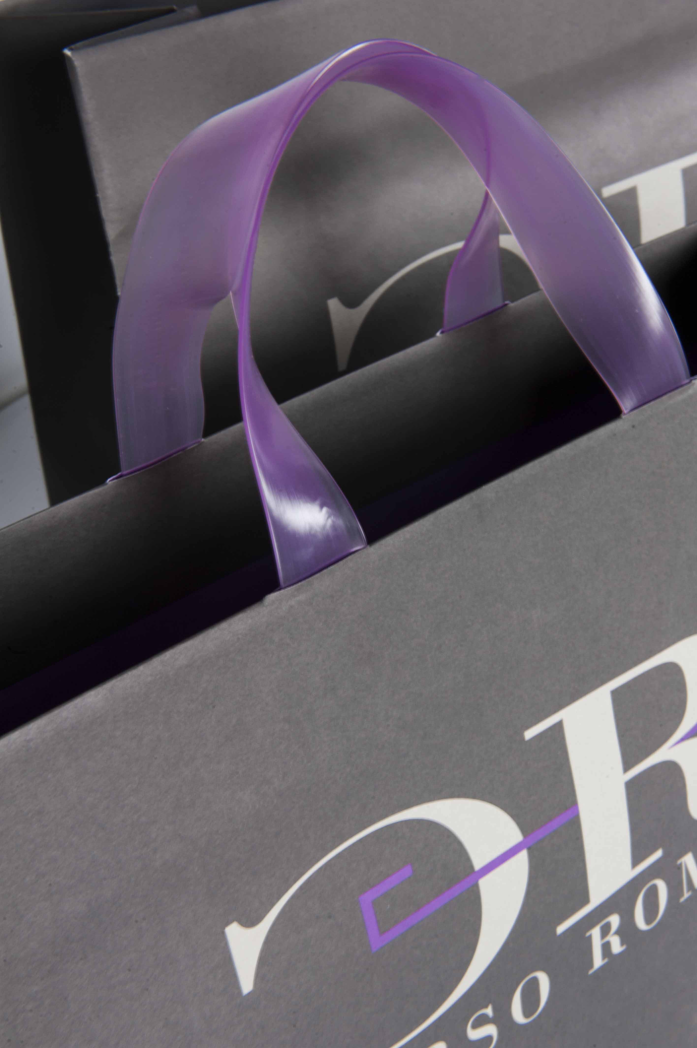 La semplicità del logo ad 1 colore su carta, con manico in carta ritorta per un tocco naturale.