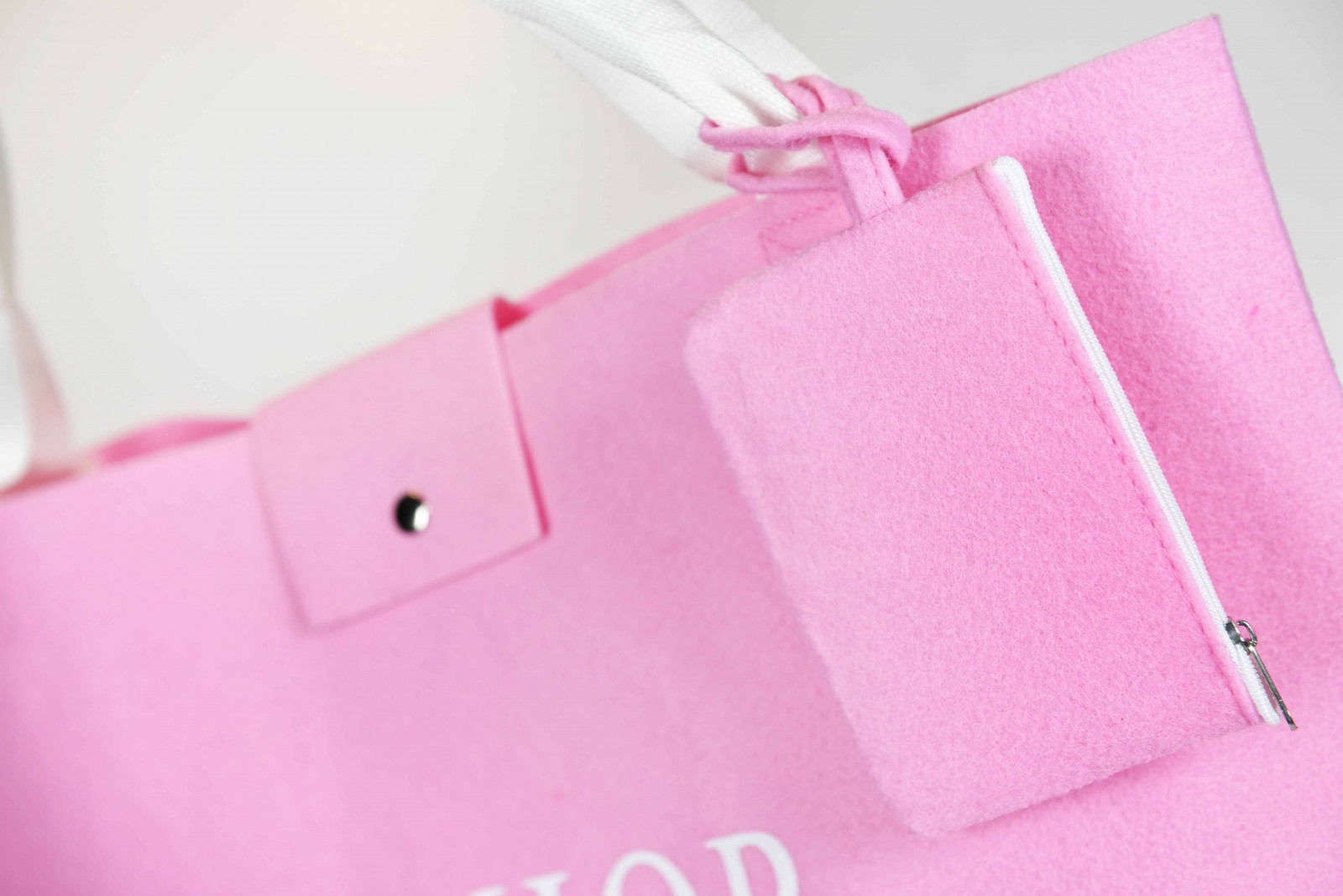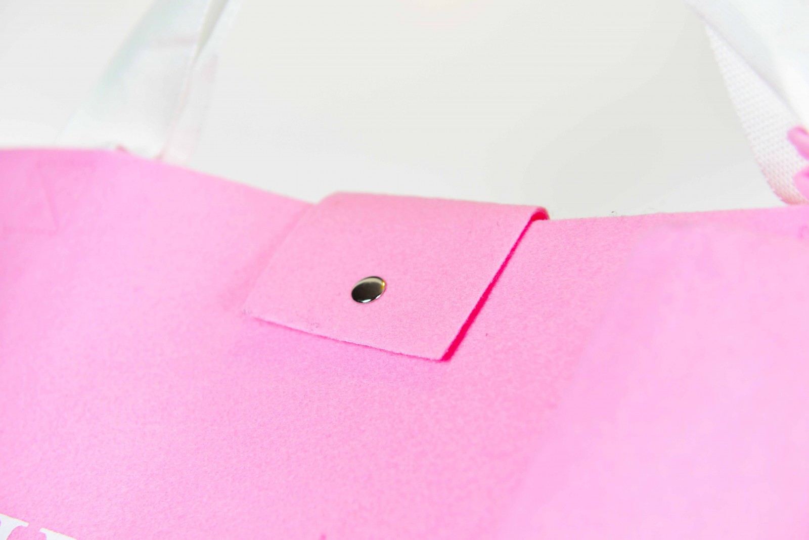 Borsa in feltro colorato pensata per un riutilizzo elegante e funzionale, adatta a molteplici ambiti: cosmesi, hotel, spa e fiere.