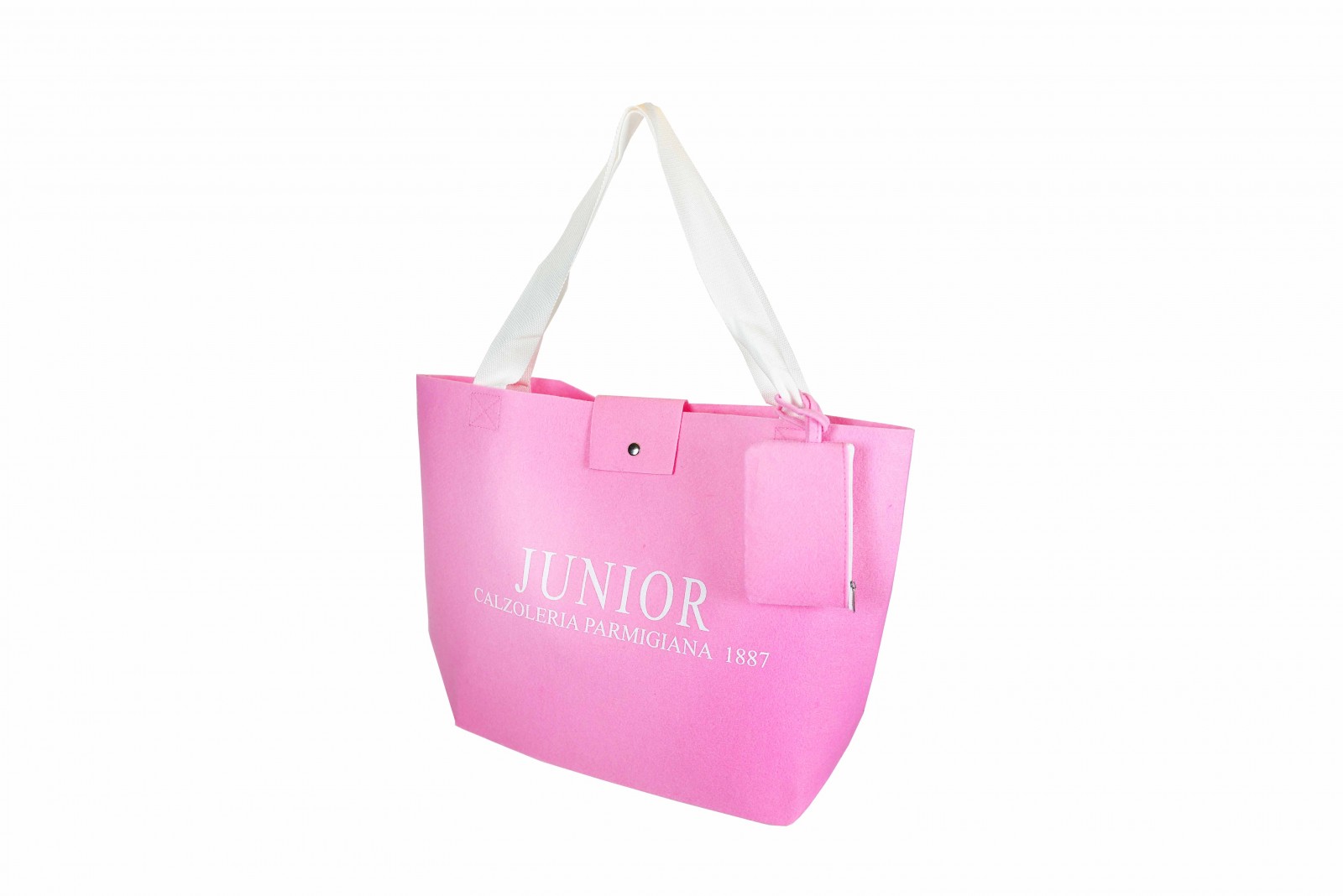 Questa shopper è stata realizzata per Parmigiana Junior , con design e colorazione ad hoc pensate per valorizzare l’immagine premium e sostenibile della struttura e per un riuso adatto alla sua clientela .