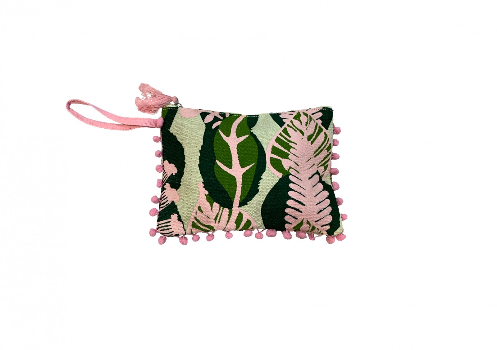 Pochette in Juta con dettagli in serigrafia e pon pon