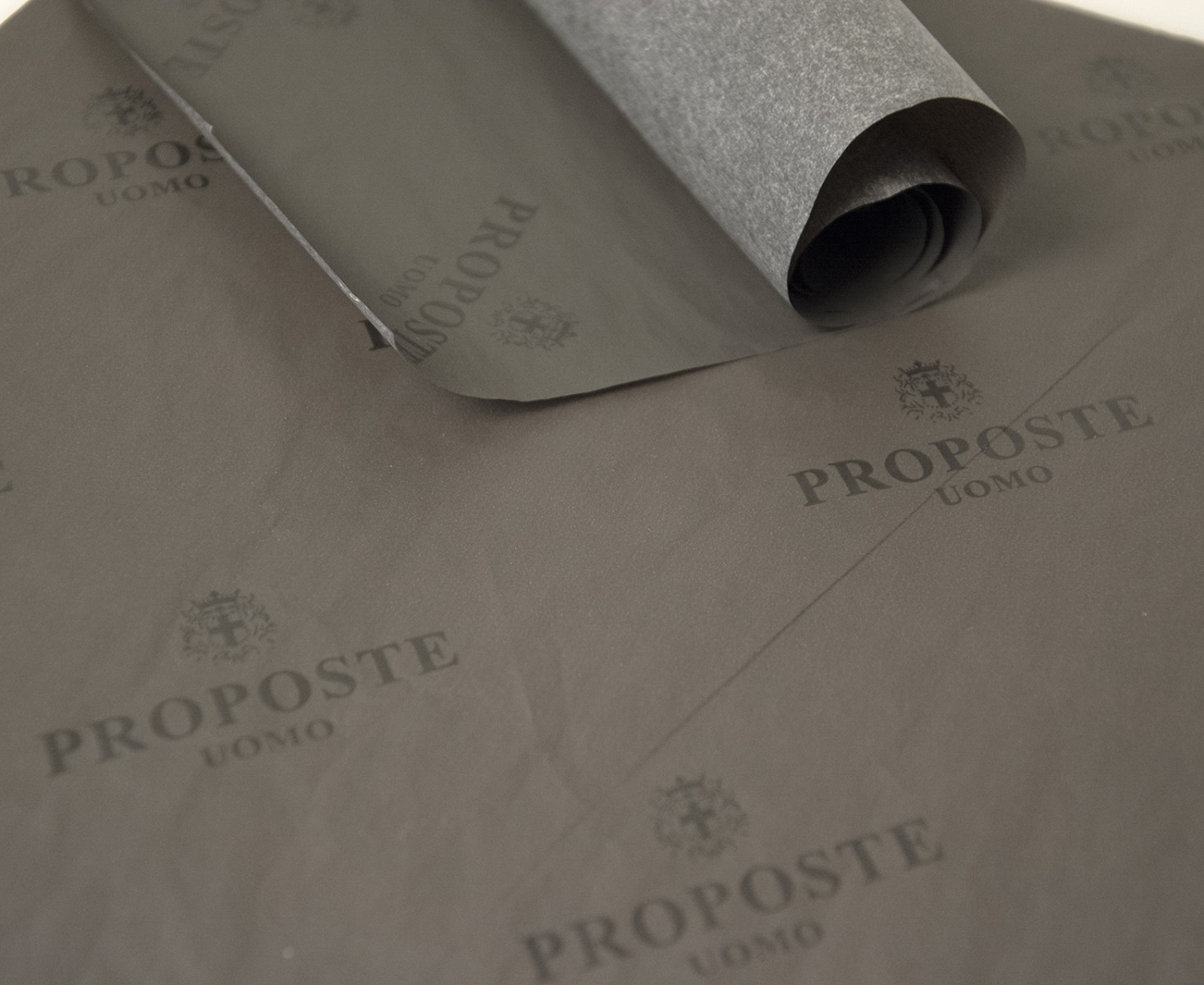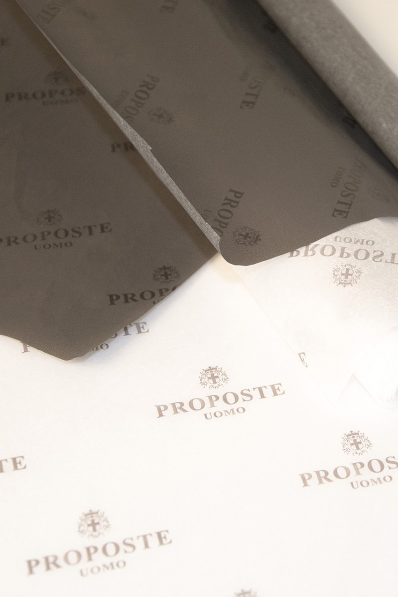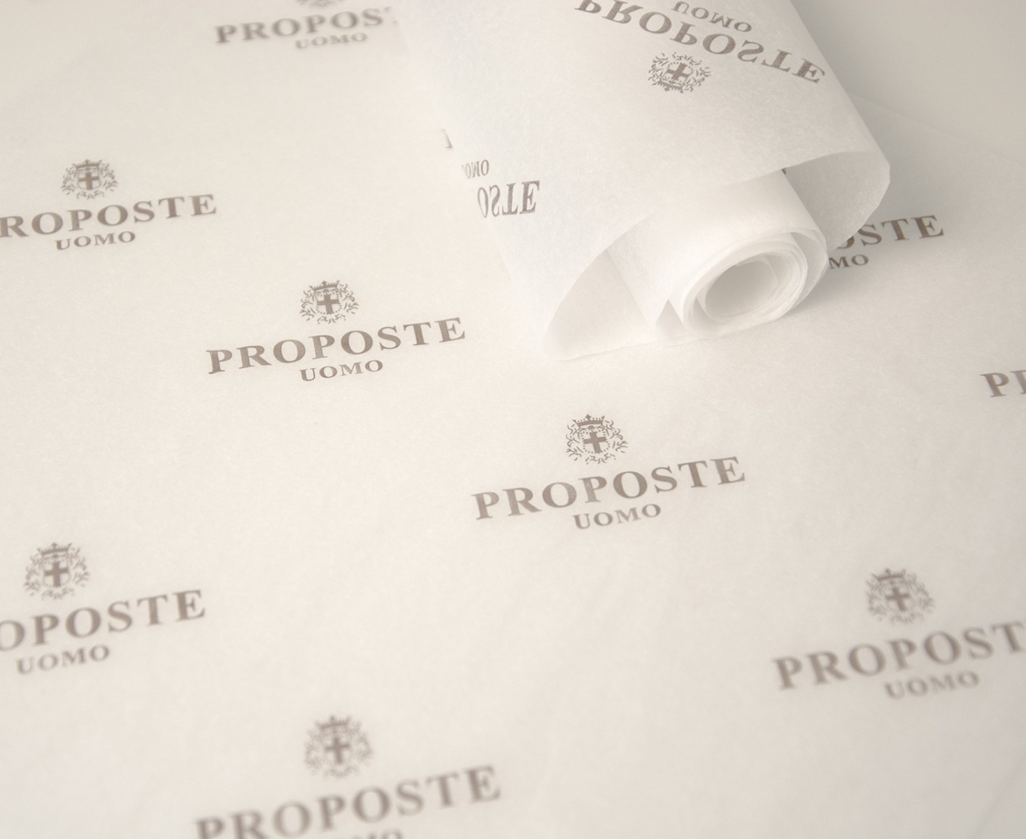 Velina lisciata da 22 gr disponibile in due versioni: stampa a fondo pieno con logo colorato oppure versione bianca con logo colorato.