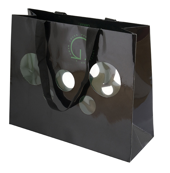 Shopper realizzata in carta da 200 gr con plastificazione lucida per una finitura brillante e resistente.