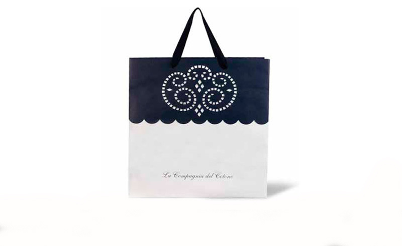 La semplicità del logo ad 1 colore su carta, con manico in carta ritorta per un tocco naturale.