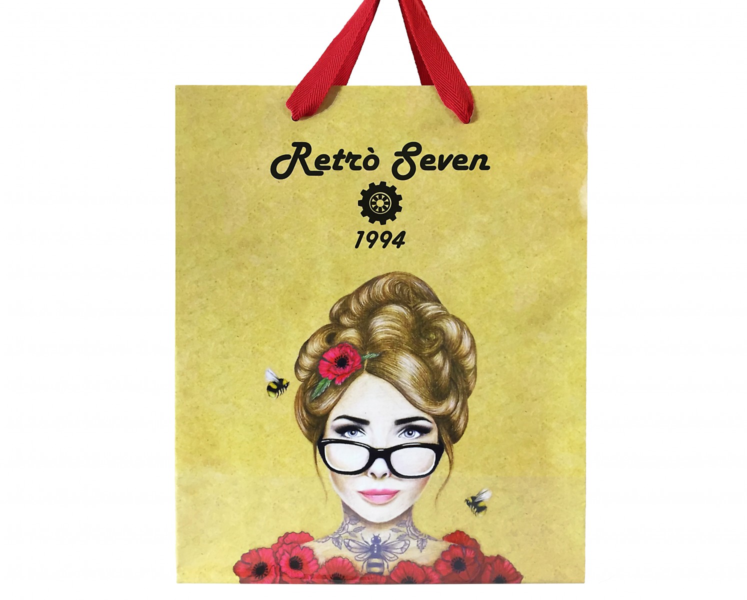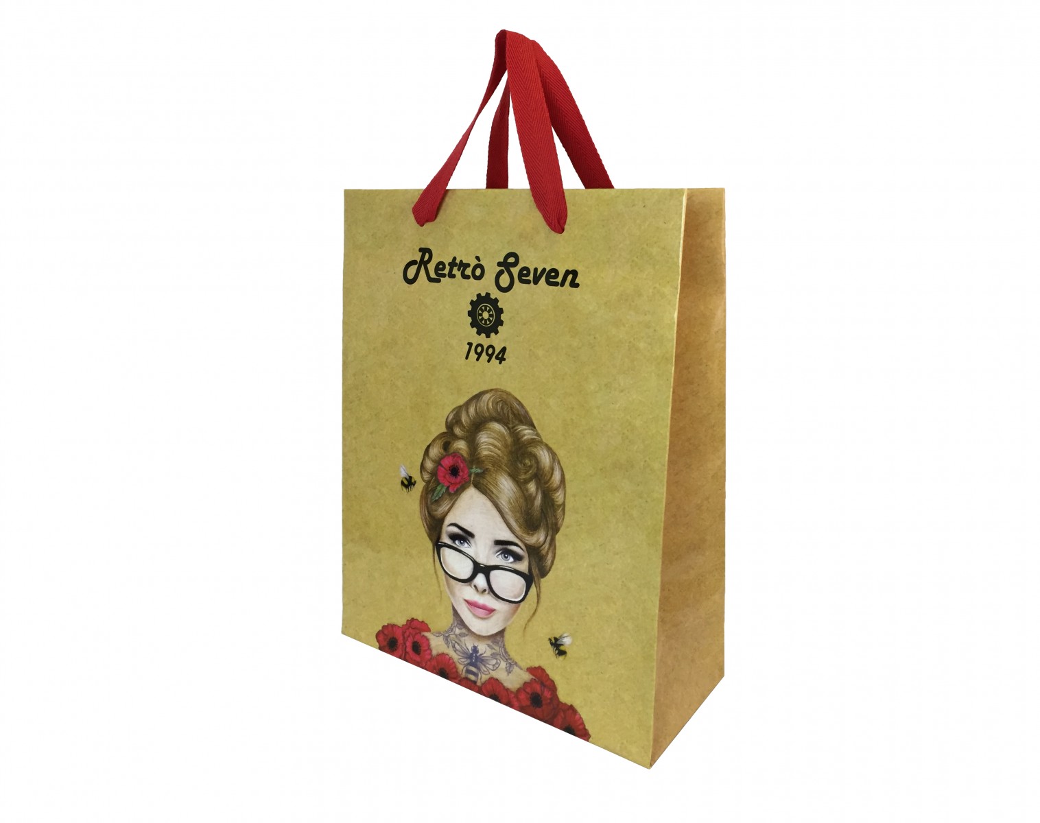 Shopper realizzata in carta patinata di alta qualità, con finitura plastificata lucida che esalta la brillantezza e protegge la stampa.
