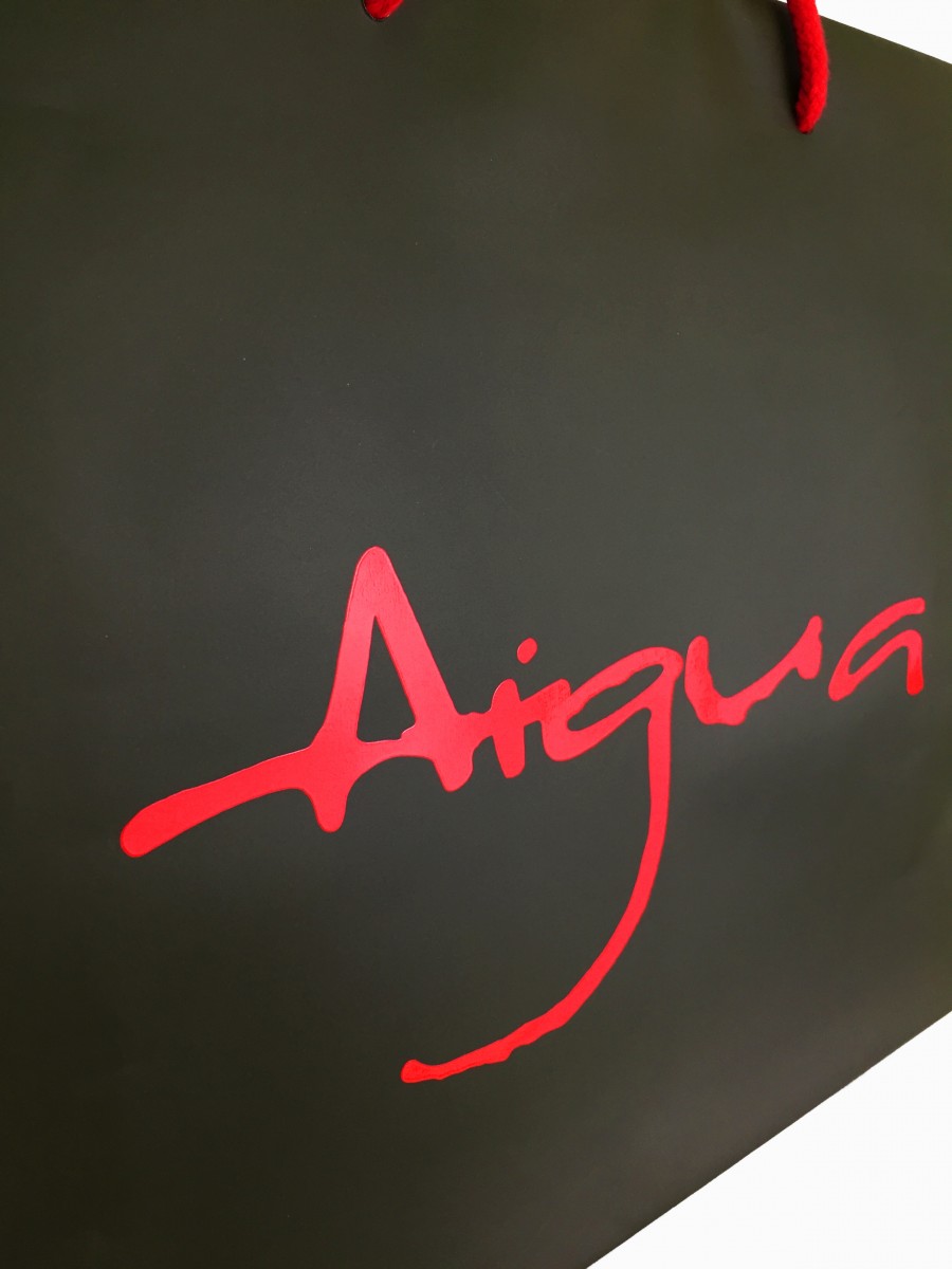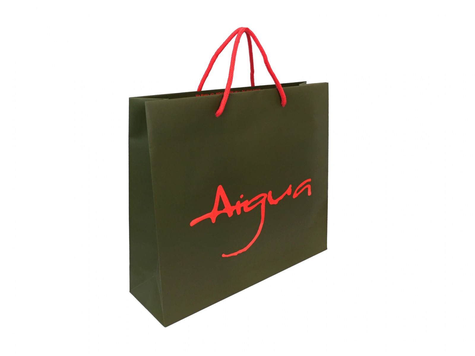La semplicità del logo ad 1 colore su carta, con manico in carta ritorta per un tocco naturale.