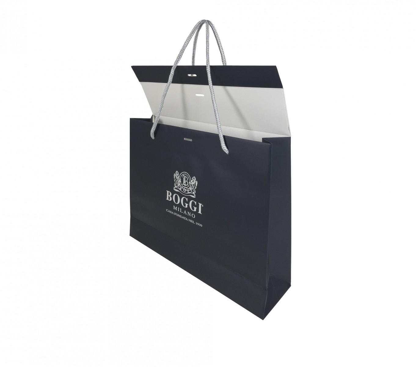 Borsa regalo realizzata in carta patinata da 210 gr, con finitura plastificata opaca che garantisce eleganza e protezione.